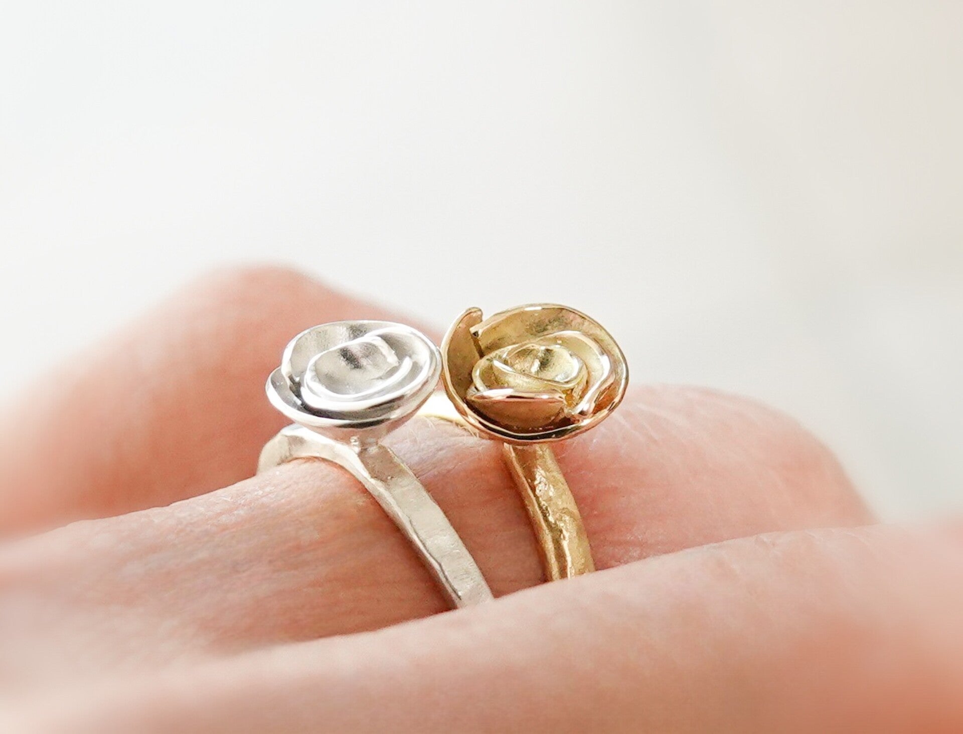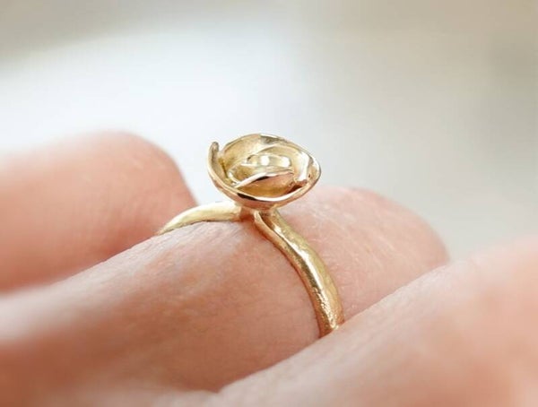 Heel mooie vrouwelijke ring met een roosje in 925 sterling zilver of 18kt geel goud