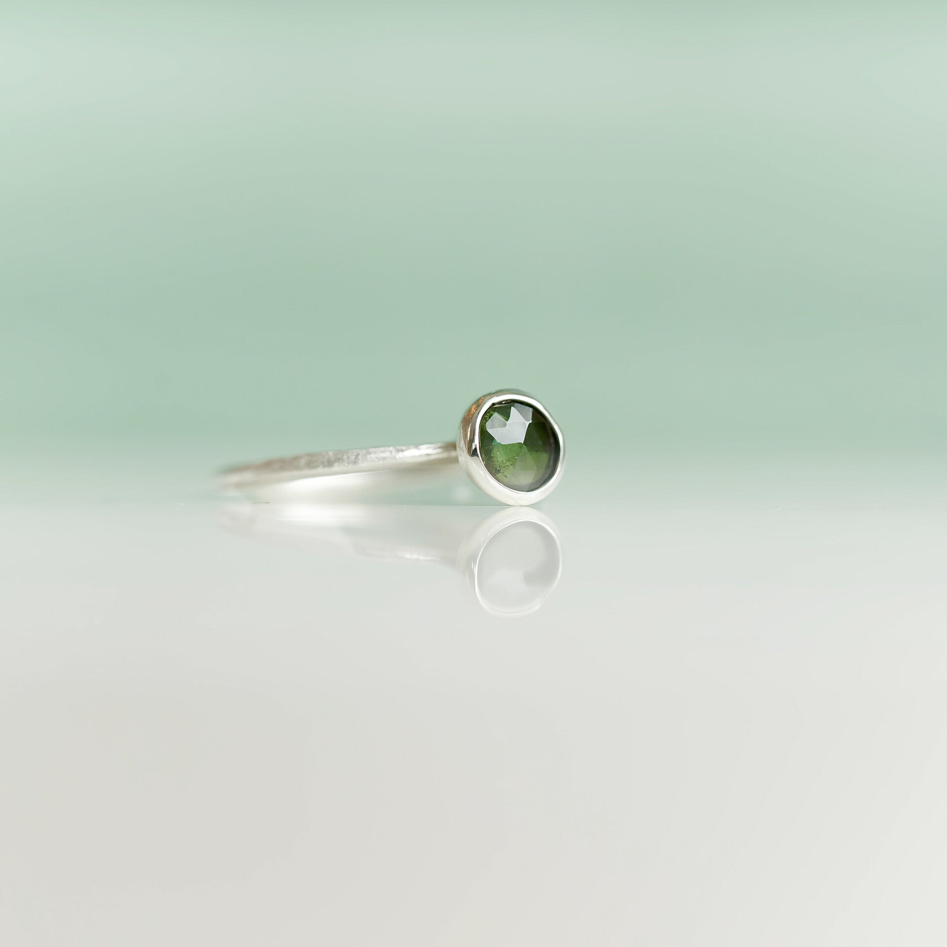 Fijne ring in 925 sterling zilver met groene toermalijn