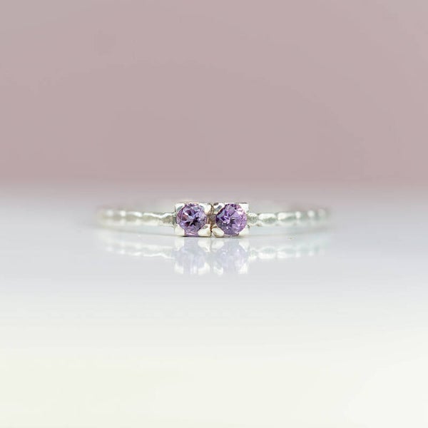 Een heel fijn ringetje in 925 sterling zilver met 2 amethisten