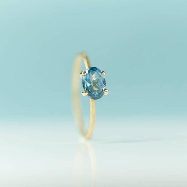 Verlovingsring in 18kt geel goud met een blue londontopaz